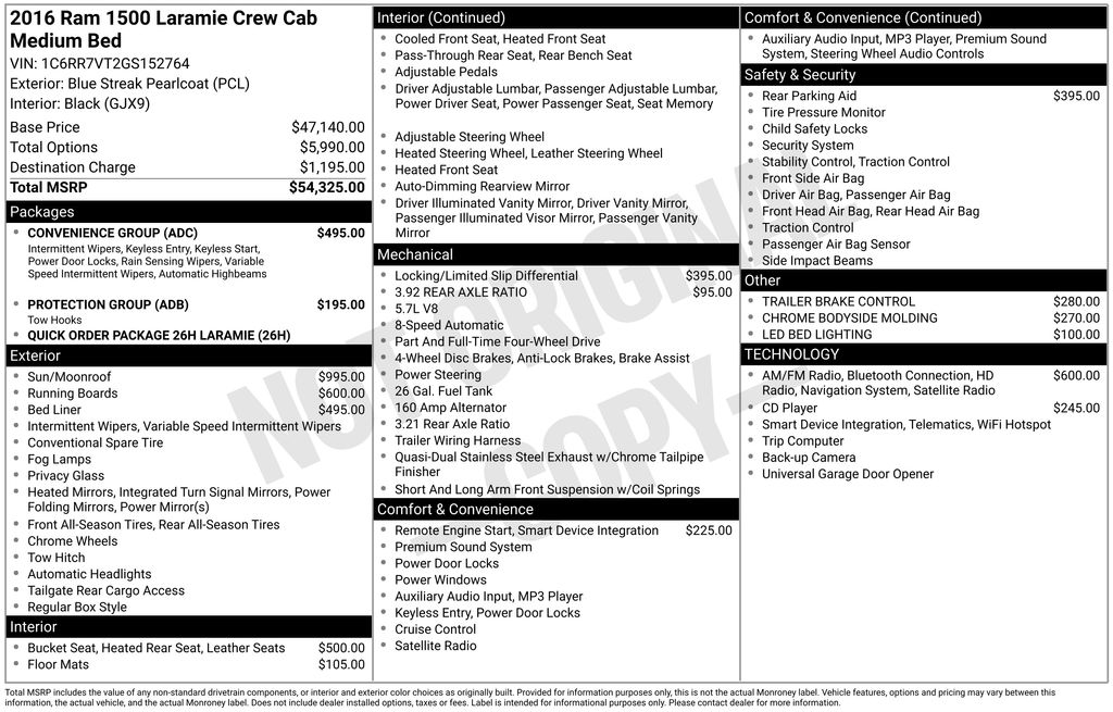 This 2016 Blue Streak Pearlcoat Ram 1500 Laramie 4WD is well equipped and includes these features and benefits: